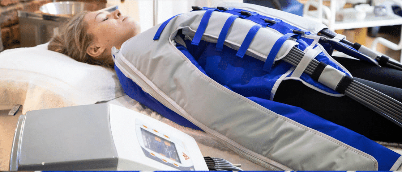 The patient will step inside a compression suit (made up of 24 separate chambers and 12 valves) and lay on a massage table whilst the suit is connected to the controller. The controller has a set of unique algorithms each create a pattern of rhythmical strokes, applying either light or heavy pressure over the body to stimulate the lymphatic system and aid in the flow of lymph through the system.